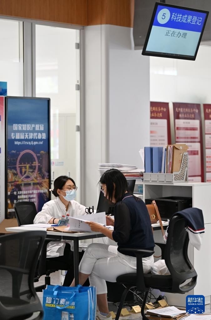 办事人员在天开园综合服务中心内办理科技成果登记(5月15日摄)。