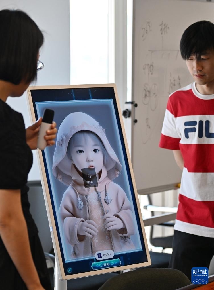 天津白马星球智能科技有限公司的工作人员在位于天开园天开广场的办公室内调试数字人产品(5月15日摄)。