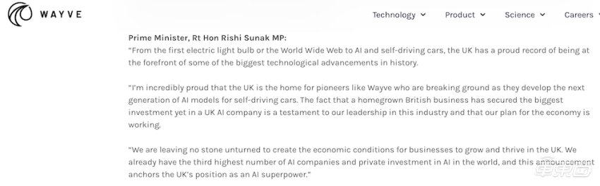 英国首相亲自发声支持Wayve