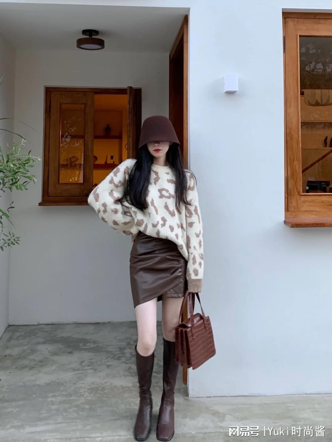 选择一件颜色柔和的圆领毛衣,如米色或淡紫色,搭配一条黑色或深棕色的高腰皮革半身裙,既保留了毛衣的温柔,又加入了皮革的酷感,这样的混搭风格,既适合日常穿着,也能轻松驾驭稍微正式的场合。脚踏一双黑色马丁靴,增添几分不羁与帅气,整体造型既保暖又不失个性。