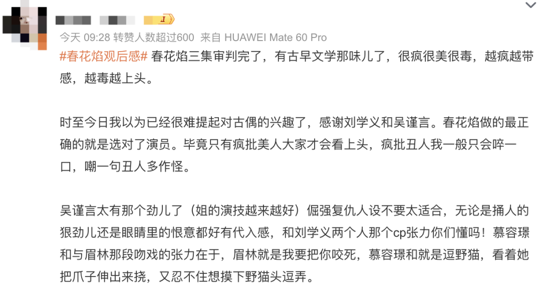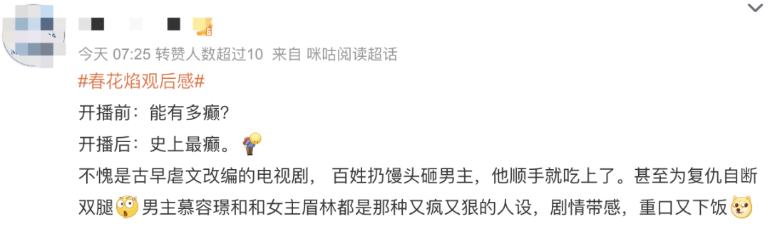 家人们,昨天优酷水灵灵抬上来的《春花焰》审判了吗?
