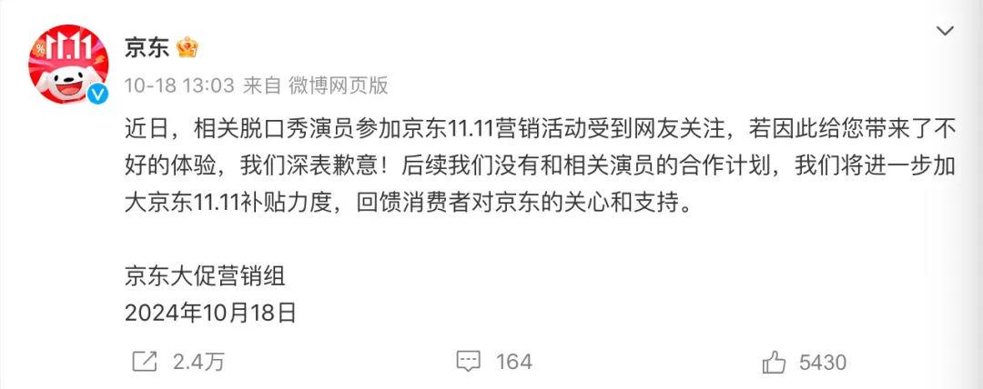 比如这一次与某东的“双11”商务合作,最初出现大量用户不满杨笠作为“代言人”,要求某东进行PLUS会员退款,然后有部分用户晒出了京东金融赎回的截图(被证实是造谣),引发了一系列舆论危机。