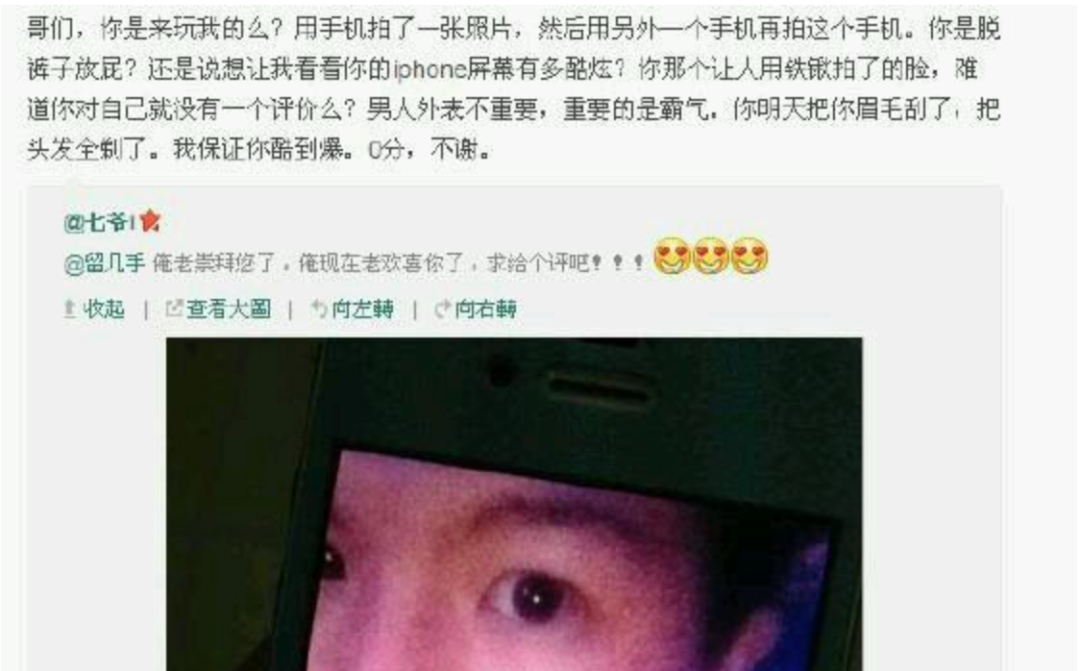 杨笠成名以后,不乏女性批评者的声音(有人嫌她不够激进,也有人嘴她过于“对立”);手哥这边,还没等记忆力好的网友发截图呢,就已经有理性派开始辩护:手哥当时给了很多网友流量,而且他也给男生负分滚粗,而且他对残疾人很温柔……