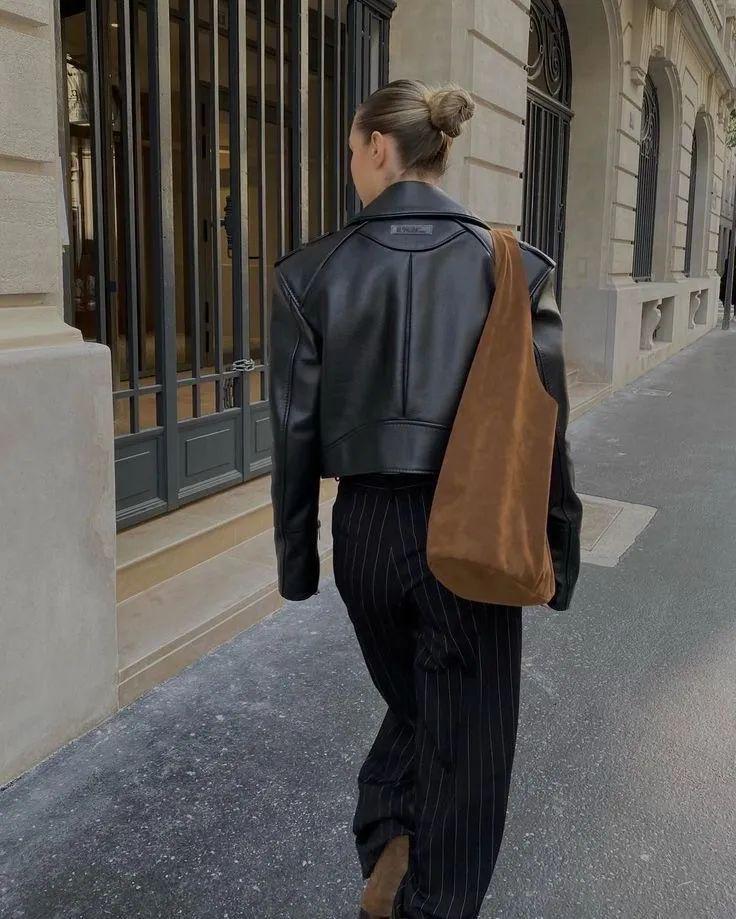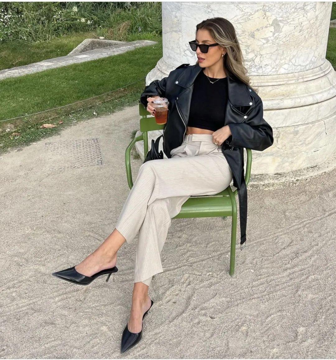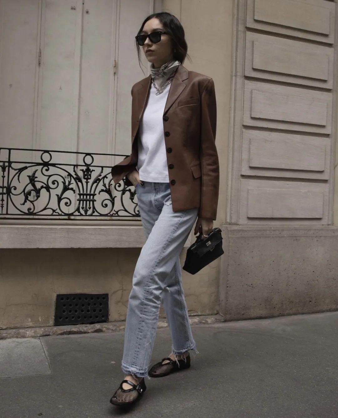 短身夹克是最容易打造层次感的单品之一:穿上低腰裤就是千禧辣妹,高腰裤则是超模下班的随性装扮。