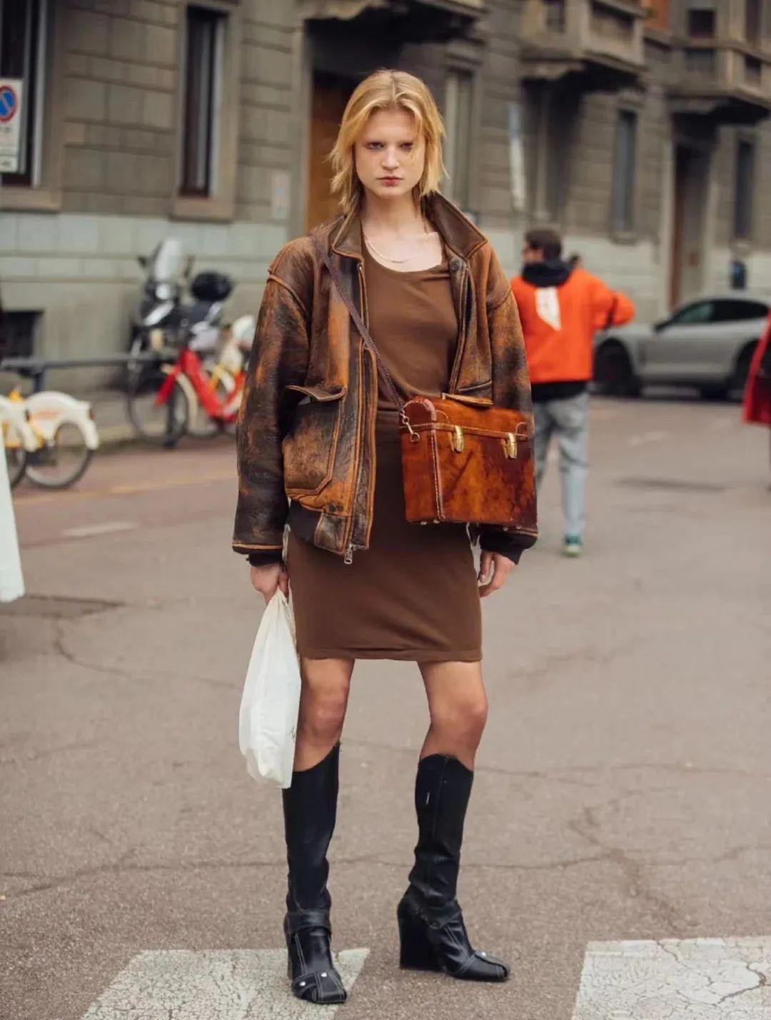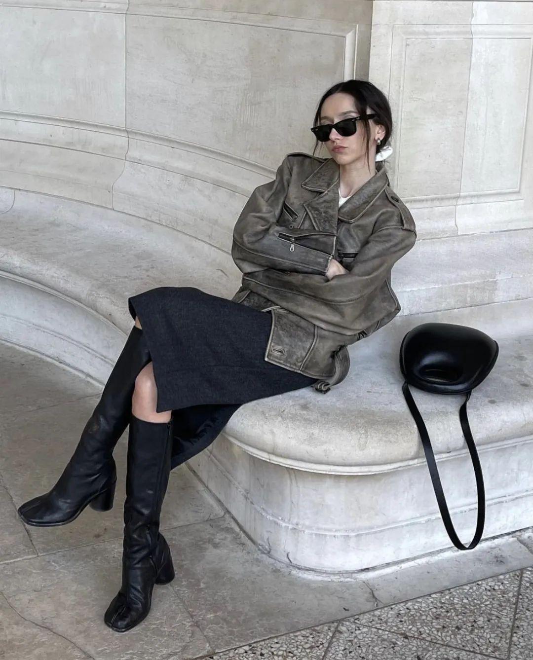 今年格外流行做旧的皮夹克。有了这种破破旧旧的痕迹,衣服莫名有种历经沧桑、但又随意时髦的感觉。