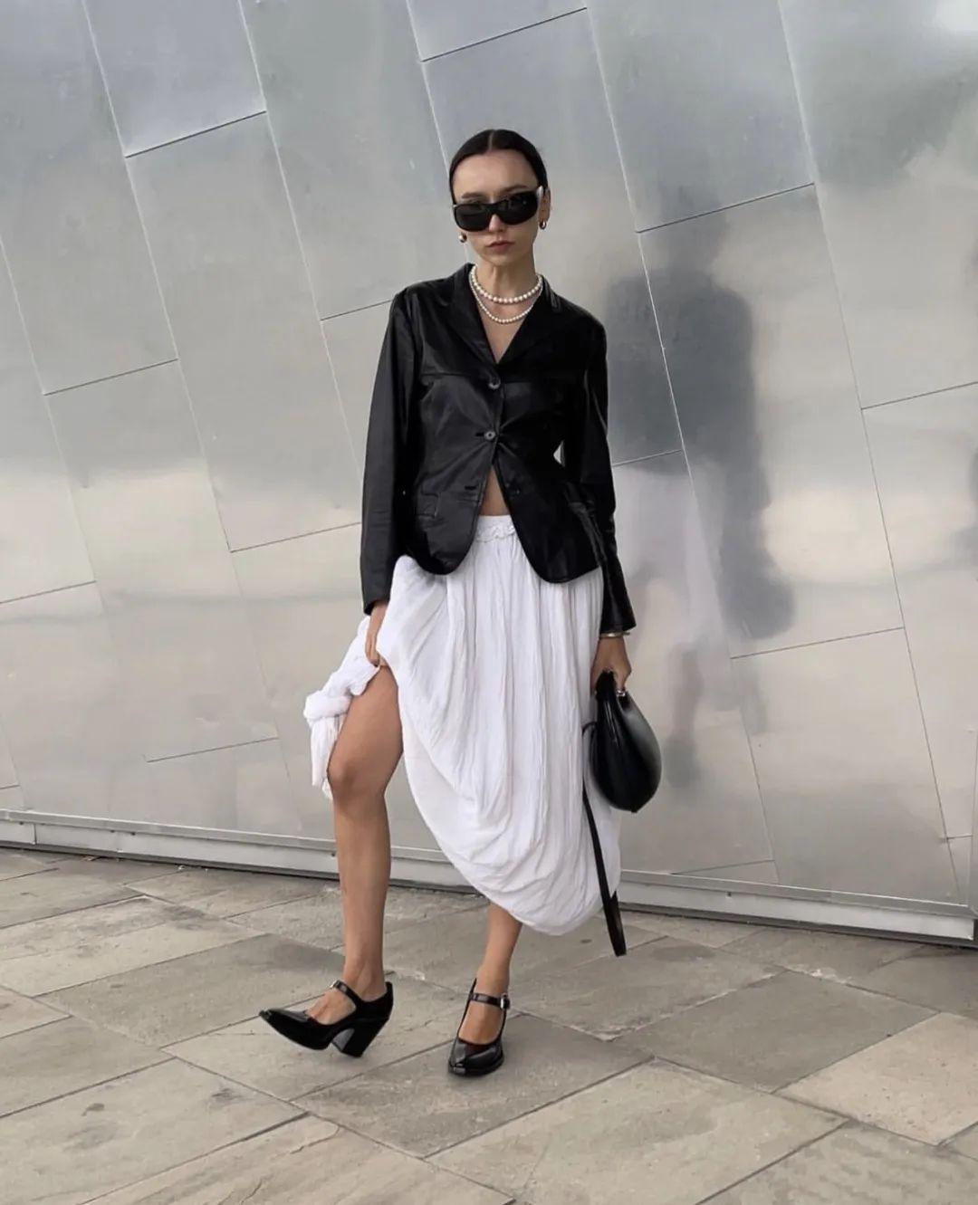搭配一条长裙,也是叛逆好看~
