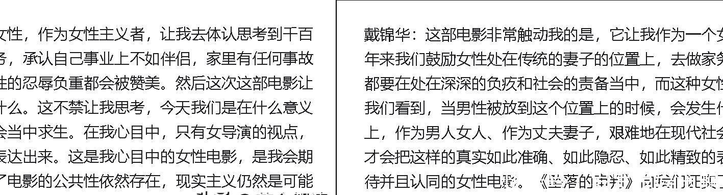 戴锦华老师是一位女性文化学者,她研究的就是电影、女性主义、历史和政治经济等诸多层面。而且女性的身份可能也让她第一时间想分享的就是最让自己受到触动和长时间研究有了景响共鸣的那一层面。