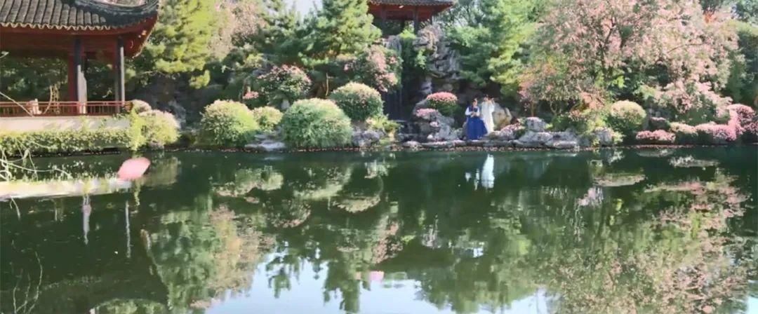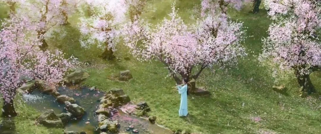 以及宝黛在湖边读书的场景,谁能解释一下所有修剪整齐的树木上,那些堆满的花瓣是从哪来的?