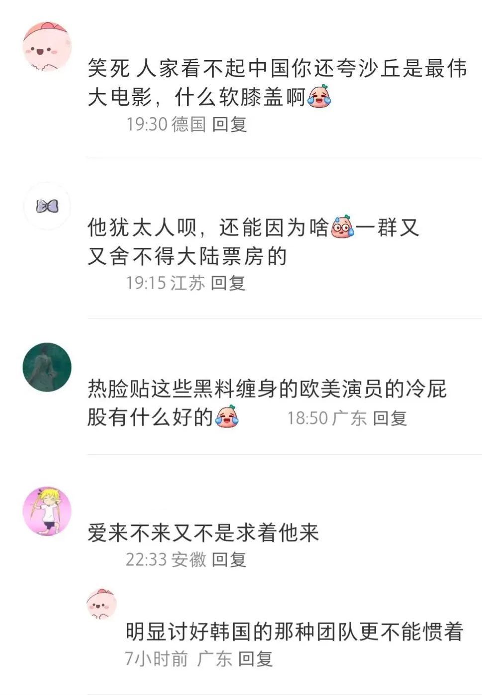 有网友认为,《沙丘2》主演不来中国宣传却一心讨好韩国市场,足以看出他们的立场和态度,所以拒绝给他们贡献票房。