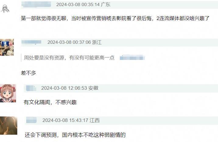 网友们也纷纷表示不看好《沙丘2》内地票房表现,直言整部电影存在文化隔阂,《沙丘1》上映期间就被宣传诈骗了,如今第二部上映根本没有再去观看的兴趣。
