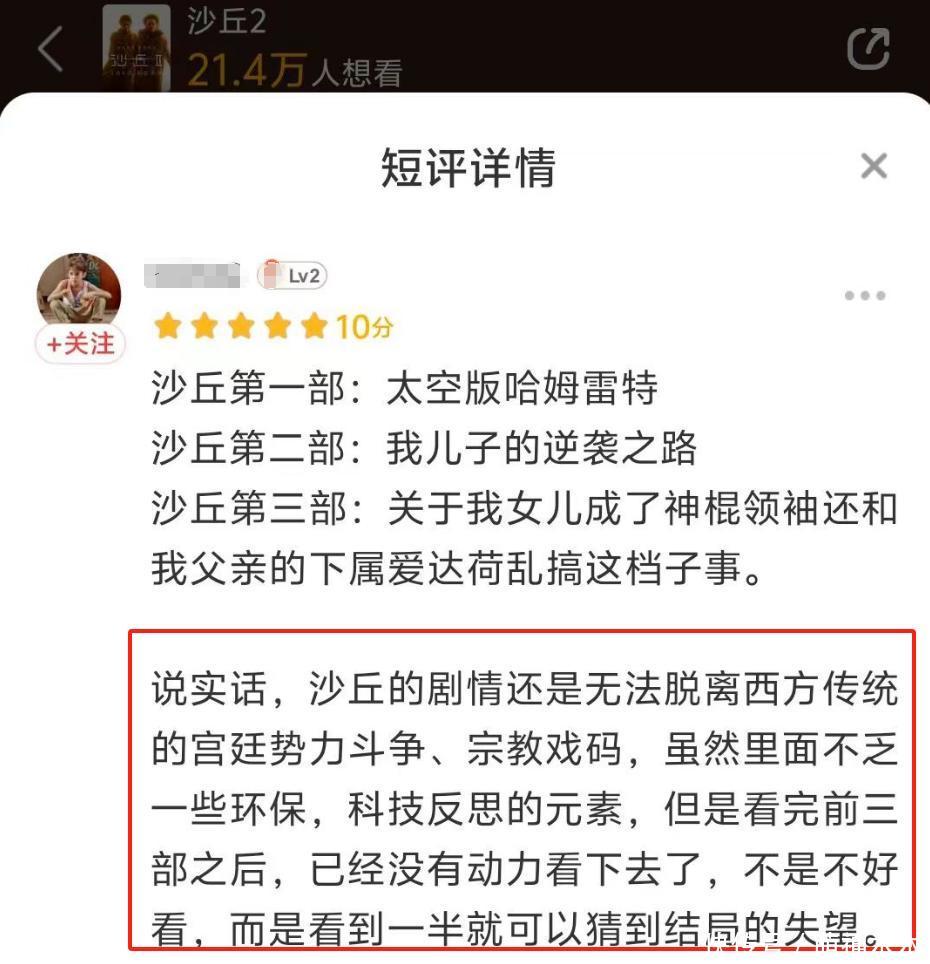 其实从观影评价看,《沙丘2》已然口碑翻车了,除了画面之外,可以说一无是处。