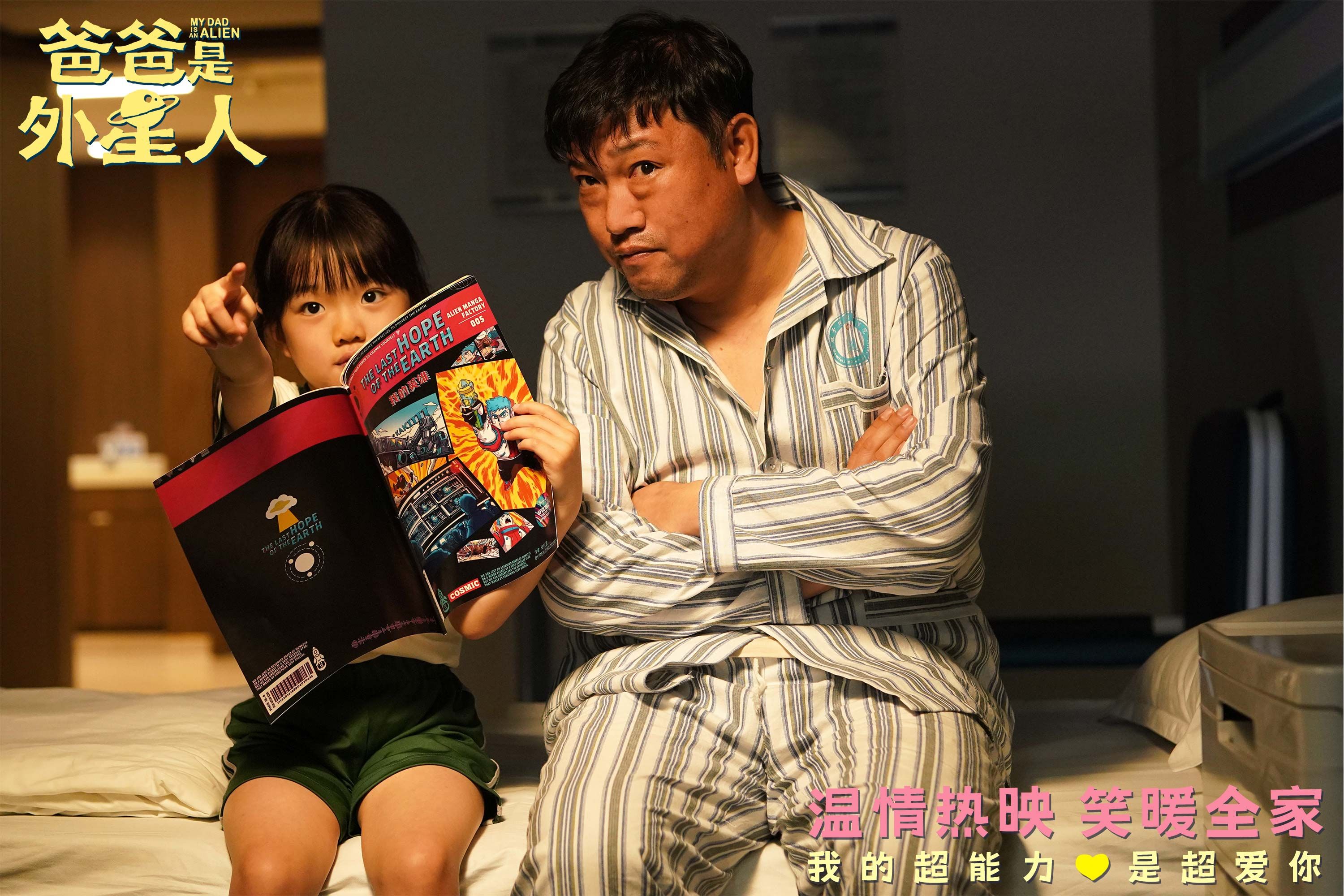 电影以“超能老爸”与女儿搞笑逗趣的日常相处为切入点,将不得已的“分离”包裹在奇妙的“外星人”畅想之中,带领观众一起探索充满欢乐与温暖的“回家”之旅。老金作为一位单身父亲,独自抚养着女儿金今,通过卖炒饭为女儿购买学区房,在得知自己患病之后,选择隐瞒女儿因为他“不知道自己这辈子还有多长”。不管是作为父亲独自撑起生活的压力,还是面对现实离别下隐忍的父爱,含蓄深沉的“中式亲情”在老金身上展现得淋漓尽致。