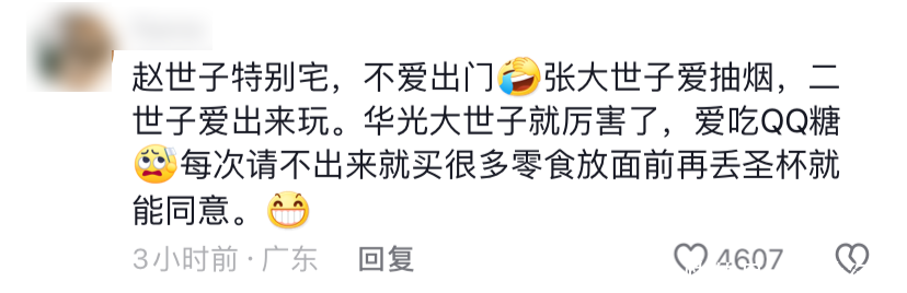 有位网友说,之前有位女子喜欢上了华光大世子,非要嫁给他,结果掷圣杯一直没同意,再问是不是嫌弃人长得丑,世子说“是的”,哈哈哈哈眼光还挺挑。