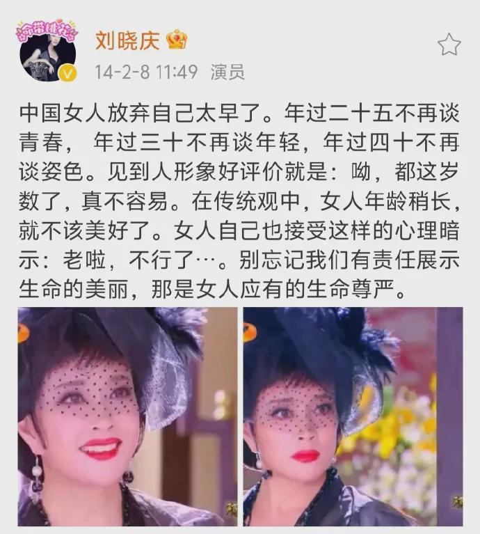 我想,除此之外,可能还在于,无论男女老少, 都活得太过于压抑,像刘晓庆那样,风风火火、潇潇洒洒、轰轰烈烈地活到老,65岁依然还有激情,74岁依然勇敢追爱,从不放弃自己、不怕重头再来、不给自己设限、永远不亏待自己,自我、清醒、尽兴、热烈,这样的猛人,这样的活法,在我们的社会,可太稀少了。