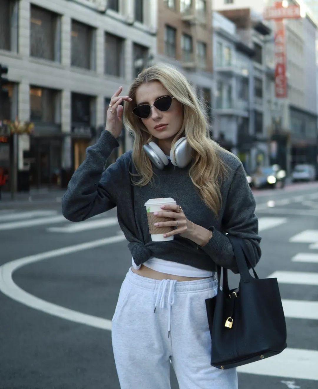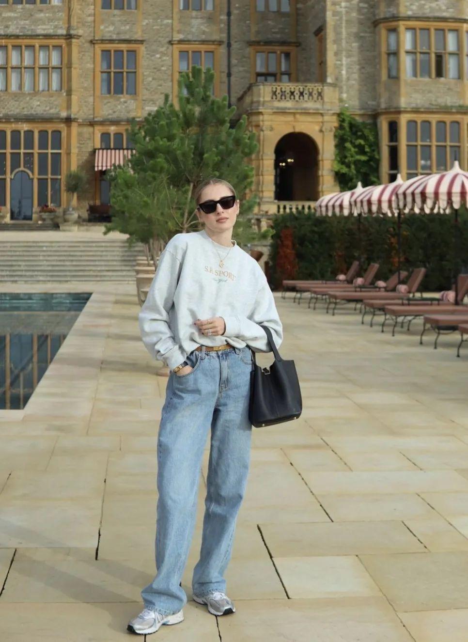 卫衣休闲舒适的组合,可以弱化年龄感,达到一种更加休闲减龄的效果。