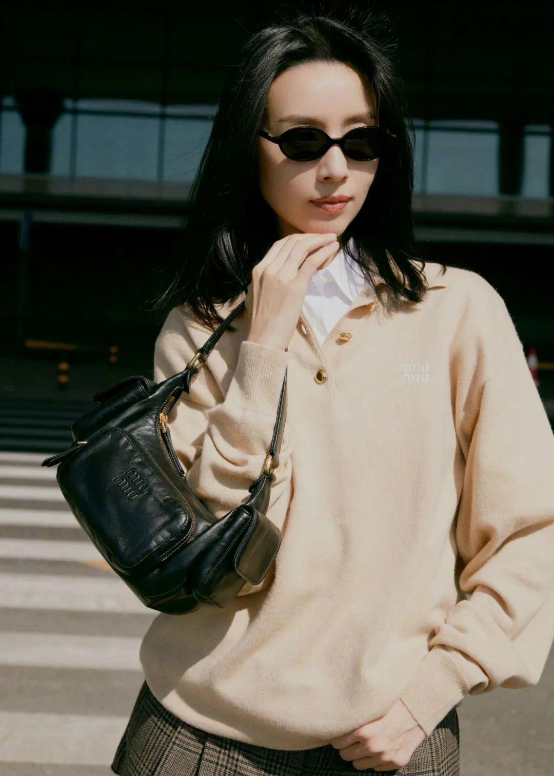 董洁启程巴黎时装周的这套米色卫衣look兼顾活力与大气,内搭白衬衫和灰色系短裙,很有学院风。