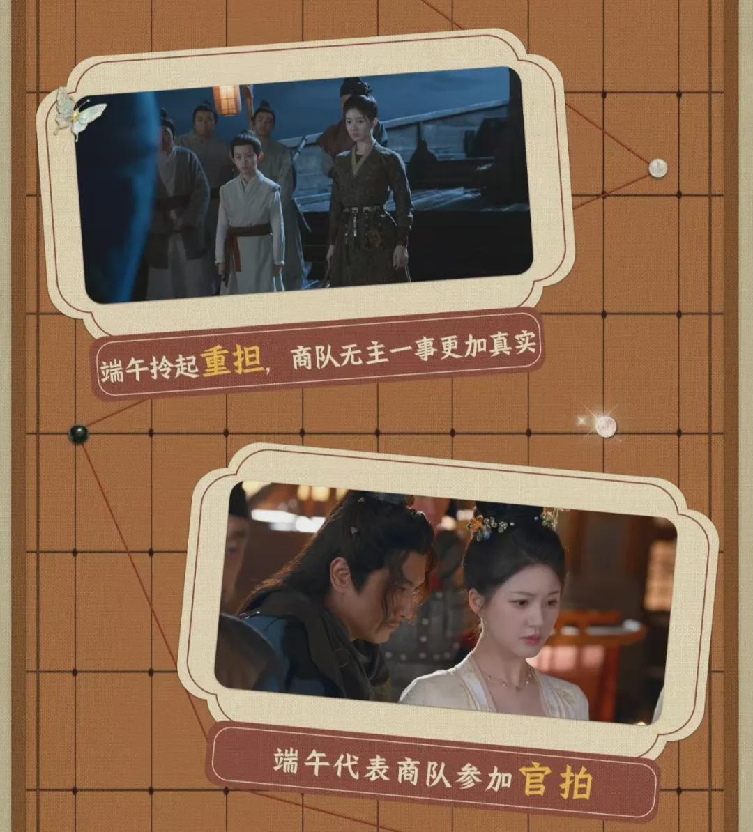 燕子京和崔十九的商战,并不是单纯的商海博弈,在他们俩背后,分别是郢王和潭王。也就是说,《珠帘玉幕》的剧情,是两个官商体系的博弈。