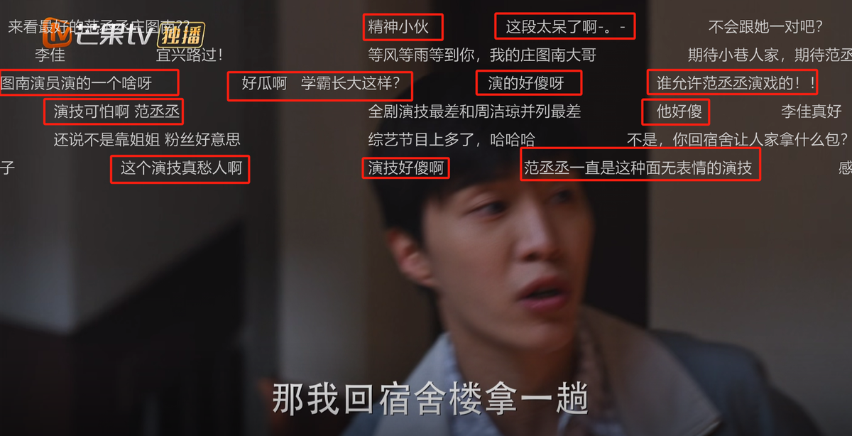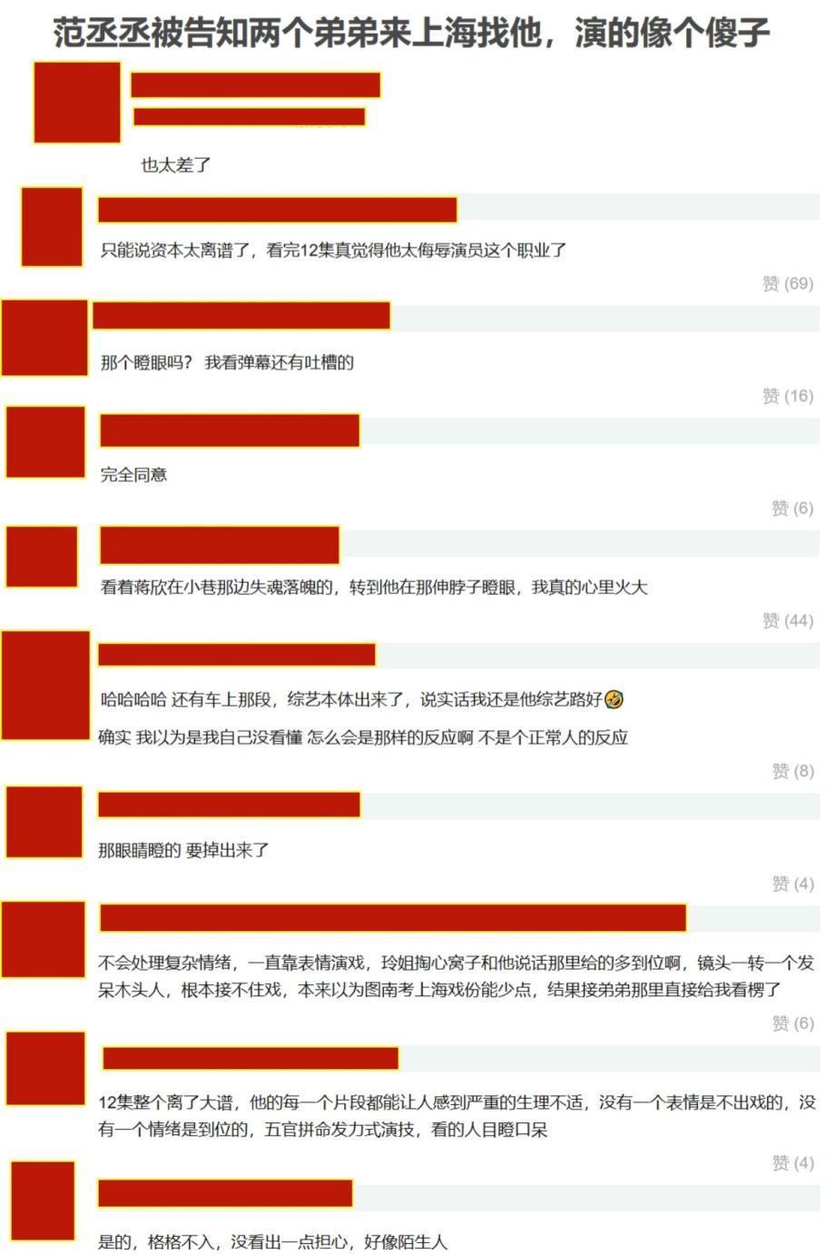“这演的啥啊”、“呆头呆脑的”、“谁允许范丞丞演戏的”、“演技好傻啊”等评论比比皆是。