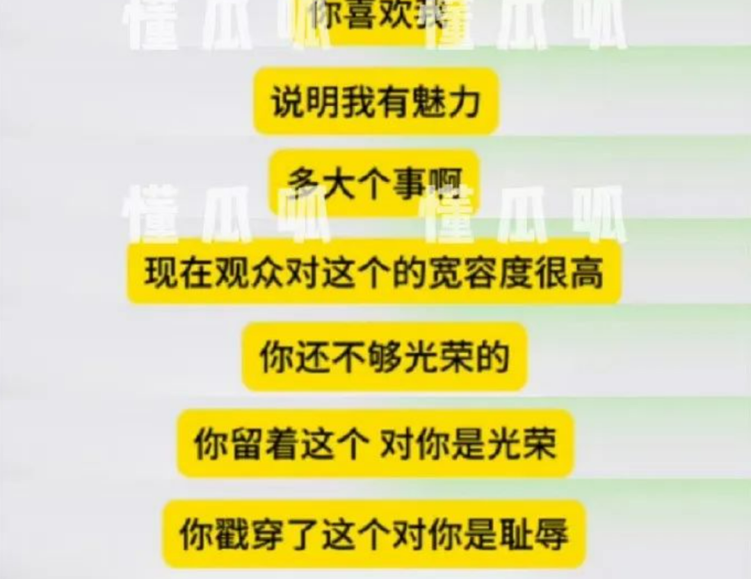 “你以为那些聊天记录和视频是什么铁证吗?我喜欢你,这还不好吗?你喜欢我,说明我有魅力,多大个事啊?你留着这个,对你是光荣,你戳穿了这个,对你是耻辱。”