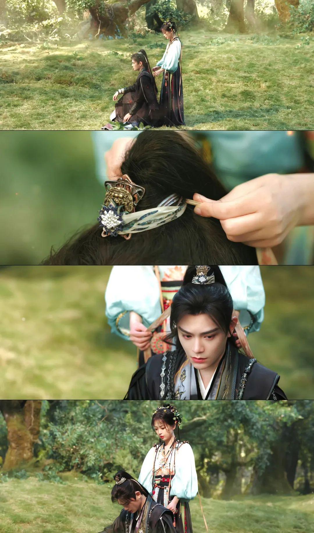 从一开始扯发带的试探,在妙妙知道他的真实身份后,虽然已经开始不舍但也设下符咒让凌妙妙离开……