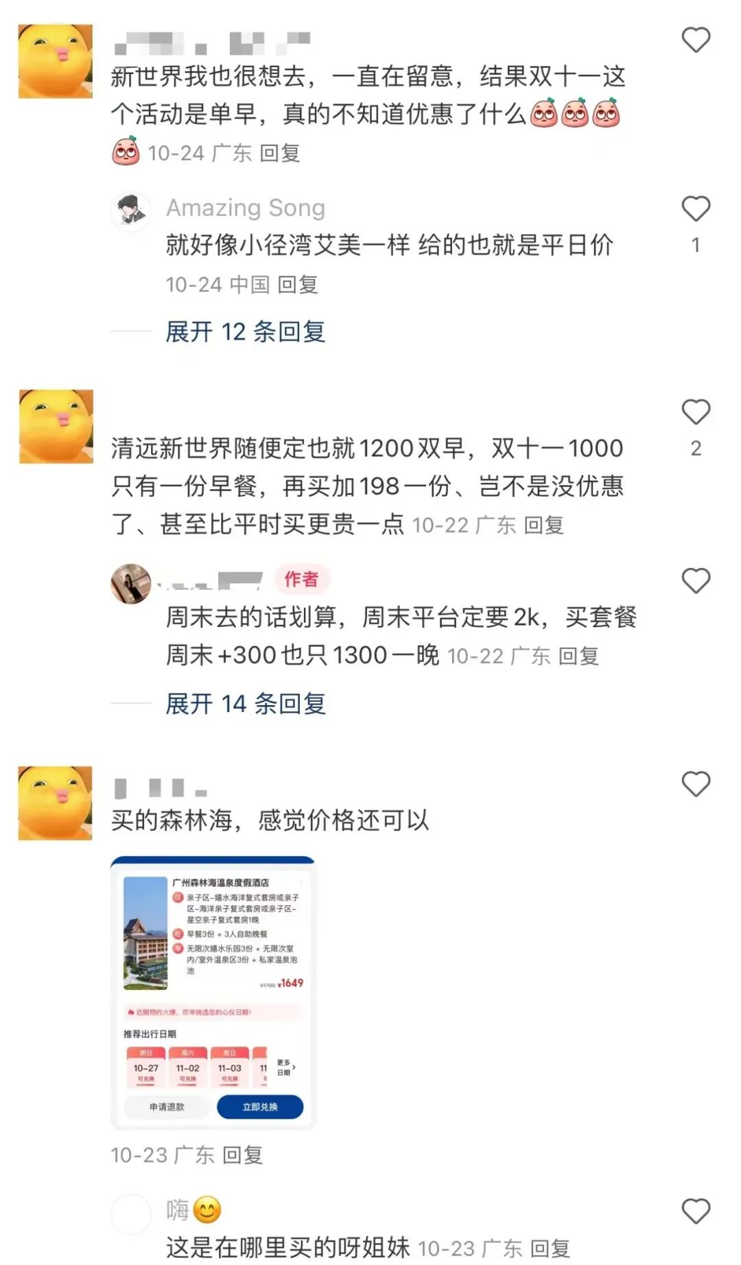套餐价格虽 好,但不是每一个这样划算的套餐你都能随意买到。为了研究这次双十一的囤货机制,买到一些数量不多的热门套餐产品,对旅行充满热爱的人来说,需得每天空出1小时在各个平台上冲浪、比对价格,不断查看活动细则,定时观看直播间抢购。网友A说:“从10月21日开始,我平均每天要花一个多小时的时间盯着手机屏幕研究这些,超上头。”时间成本的积累也让小A感受到了“便宜并不简单”的现实。