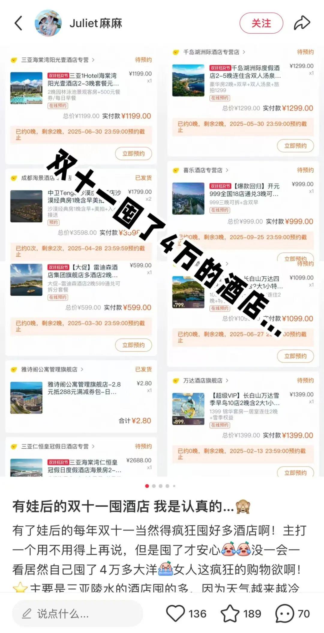 小红书上的部分 KOL已经变身为双十一酒店促销员,