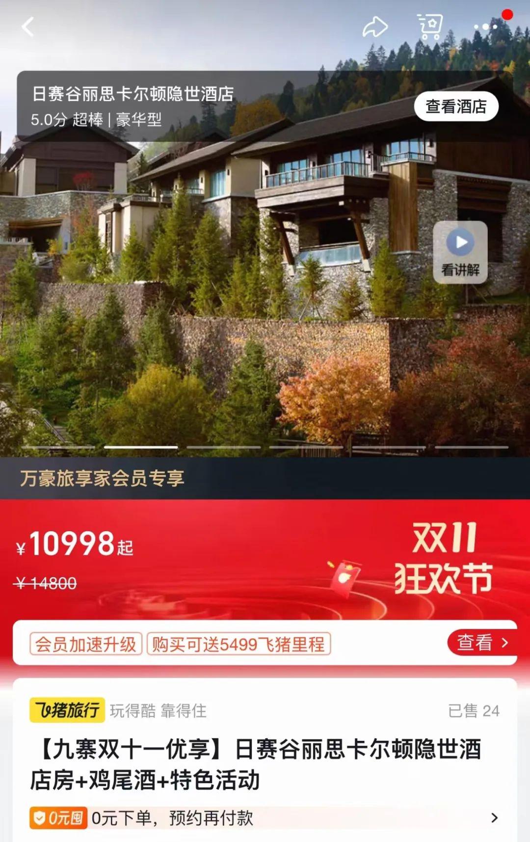 也许是考虑到以上原因,加上酒店们显然也很难完全从对OTA的依赖中完全脱离,“打不过就加入”,今年的双十一,在平台上线的酒店套餐显得十分有诚意。譬如新加坡嘉佩乐酒店,平时每晚房价在7700元一晚的房间,预售套餐价格为9691元两晚;悉尼洲际酒店约为3150元一晚的房型,预售价为1641元一晚,还升级为东部港湾景权益房型(非基础房型);悦榕集团国内13家悦榕庄三晚通兑2999元;还有无数 江浙沪专属超值链接……对于消费者来说,这样琳琅满目、丰俭由人的选项,搭配上极有吸引力的价格,让人一边浏览一边“这个要,这个也要”,统统放入购物车。