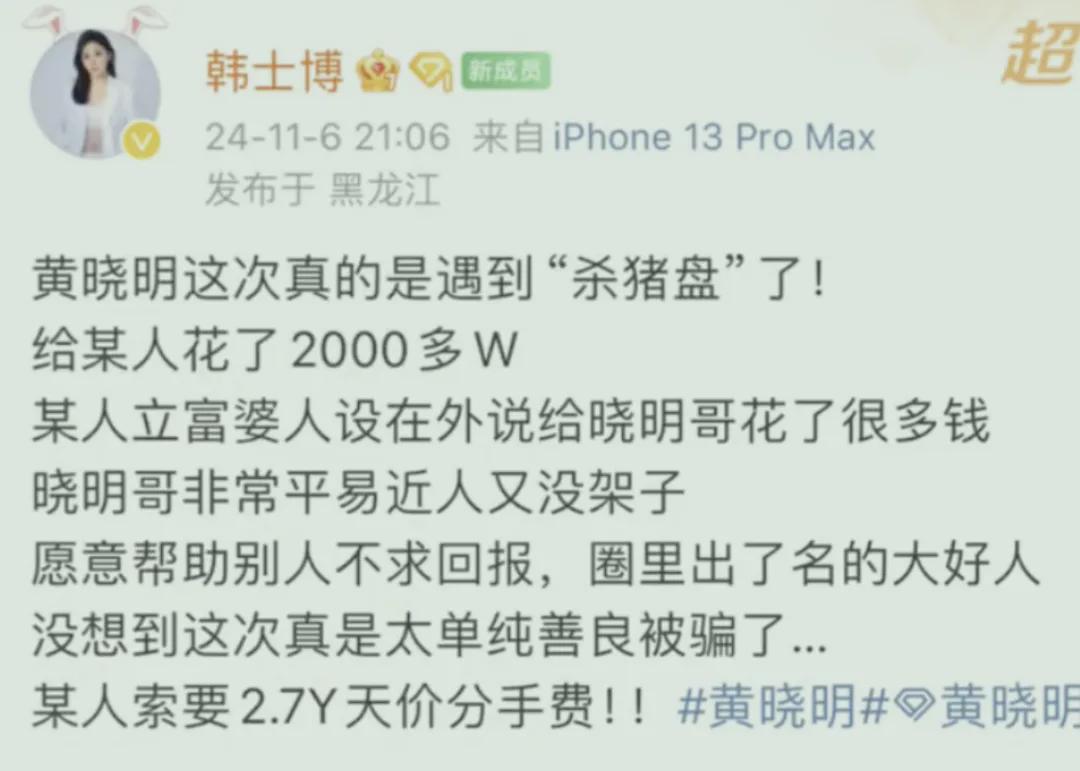 据说闹得最凶时,黄晓明到处道歉,为叶珂擦屁股。