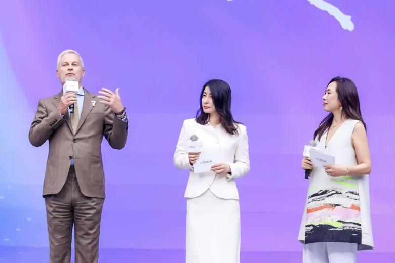 欧莱雅北亚总裁及中国首席执行官博万尚(左),奥运跳水冠军、赫莲娜品牌至美大使郭晶晶(中),欧莱雅北亚及中国公共事务总裁兰珍珍(右)分享“美之道”。
