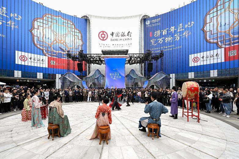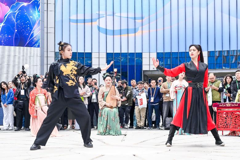 中午11时许,中国第一位唢呐博士刘雯雯在“四叶草”中央广场率先登场,承袭千年风华的二十四伎乐国风乐团奏响了国风曲目,雅乐入耳,娓娓道来。随后,峨眉武术非遗传承人凌云带领峨眉派女子功夫团亮相,十八般武艺行云流水,体现了别具一格的峨眉武术美学。为特别献礼中法建交60周年,来自中国、法国等五洲十国的模特身着各国特色服饰,开启了“让中国看到世界的美”主题走秀,温情融入中法两国文化与艺术的标志性元素。
