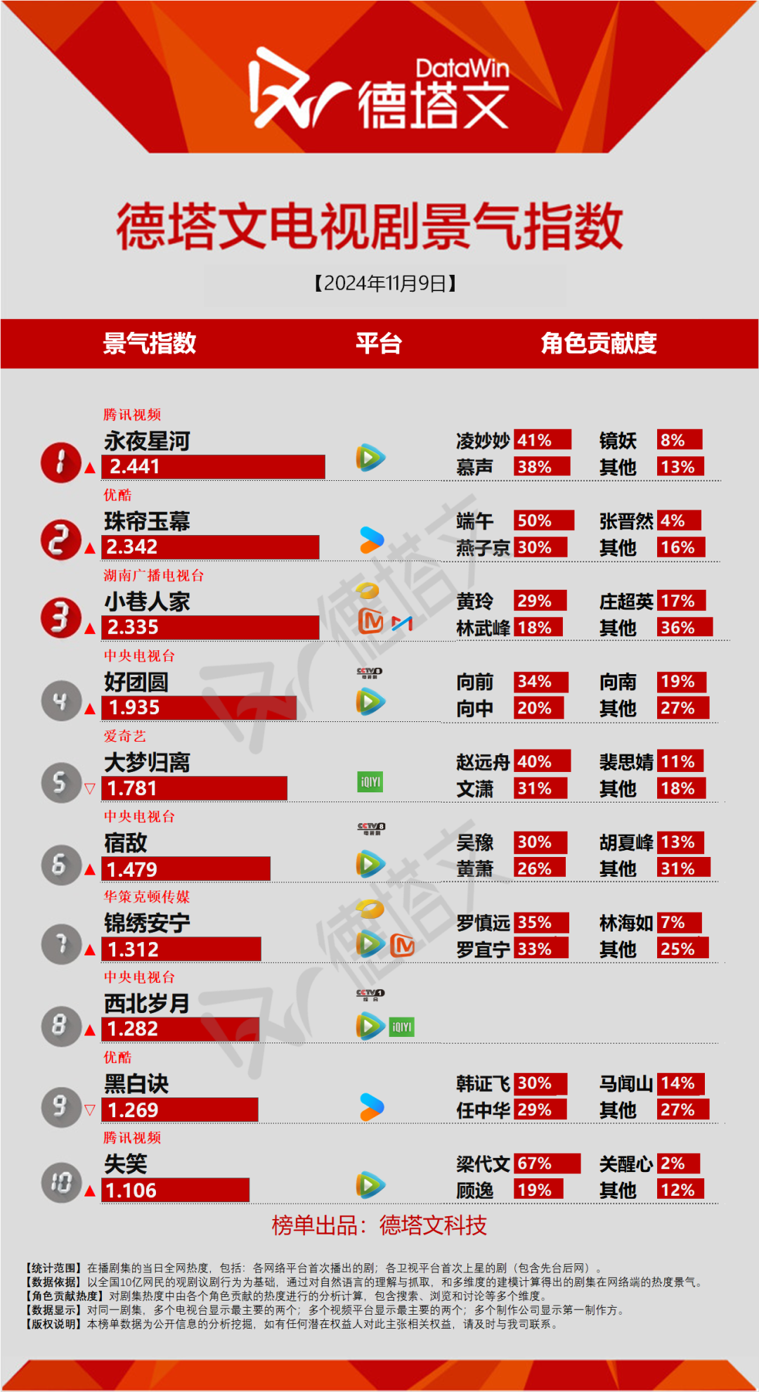 4、数据覆盖首次上星的电视剧和首次播出的网剧。