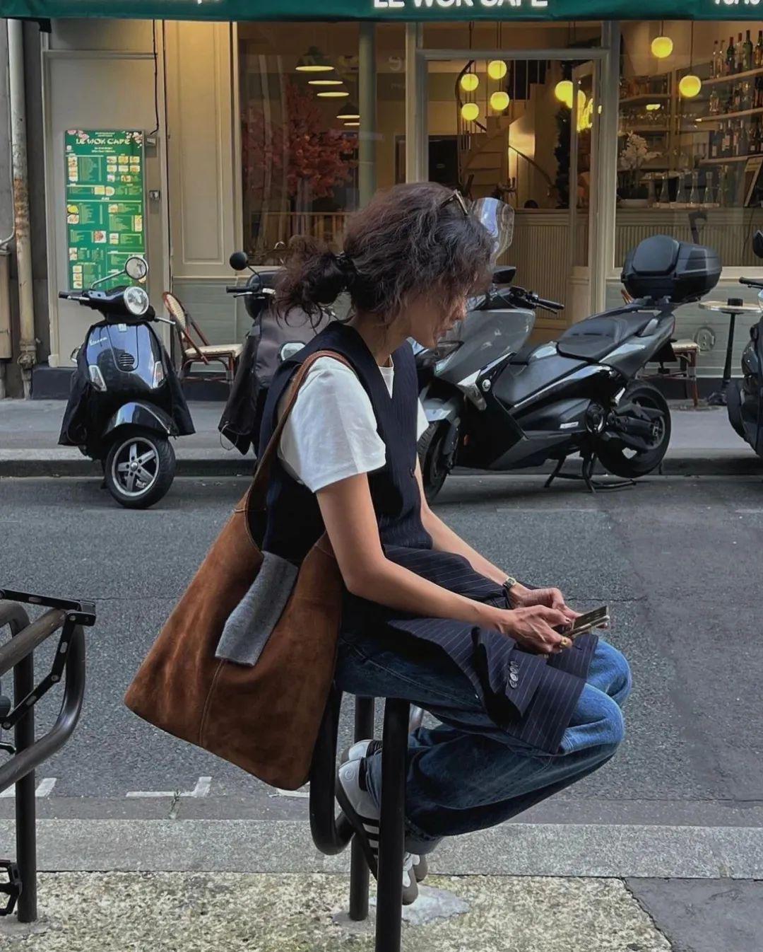 麂皮包的魅力总是经典永恒的,属于秋冬的基本款,不容易出错。