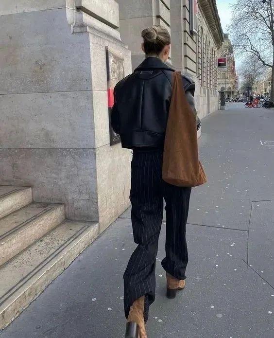 其中麂皮包值得入手,搭配率非常高,还可以塑造出同样的穿衣风情。