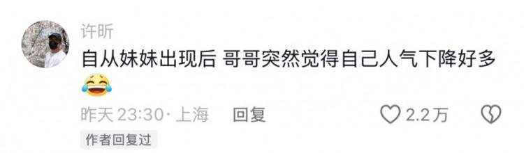 许昕则在评论里留言:“自从妹妹出现后,哥哥突然觉得自己人气下降好多。”而全红婵则回复调侃许昕“还是太全面了”。