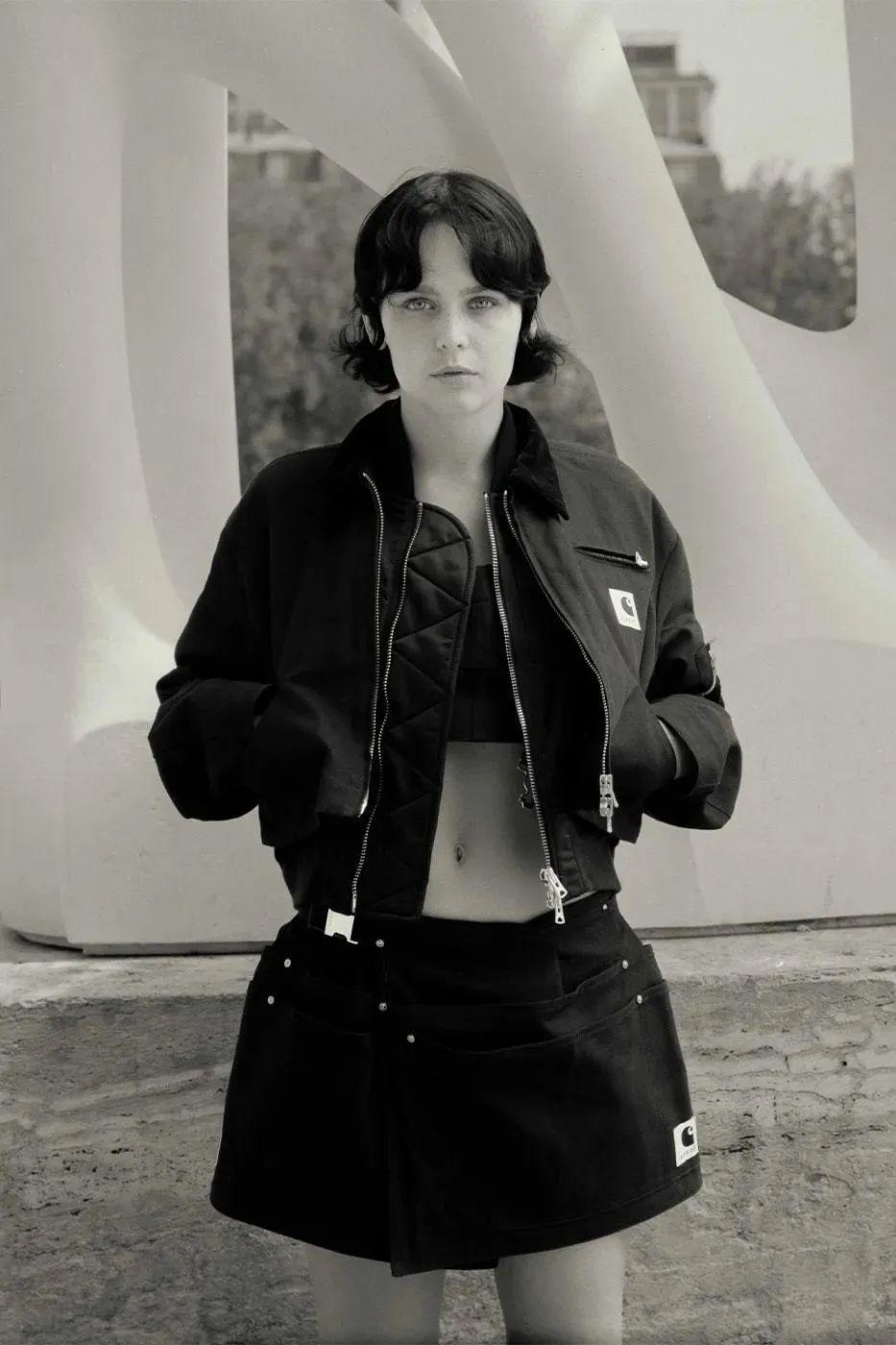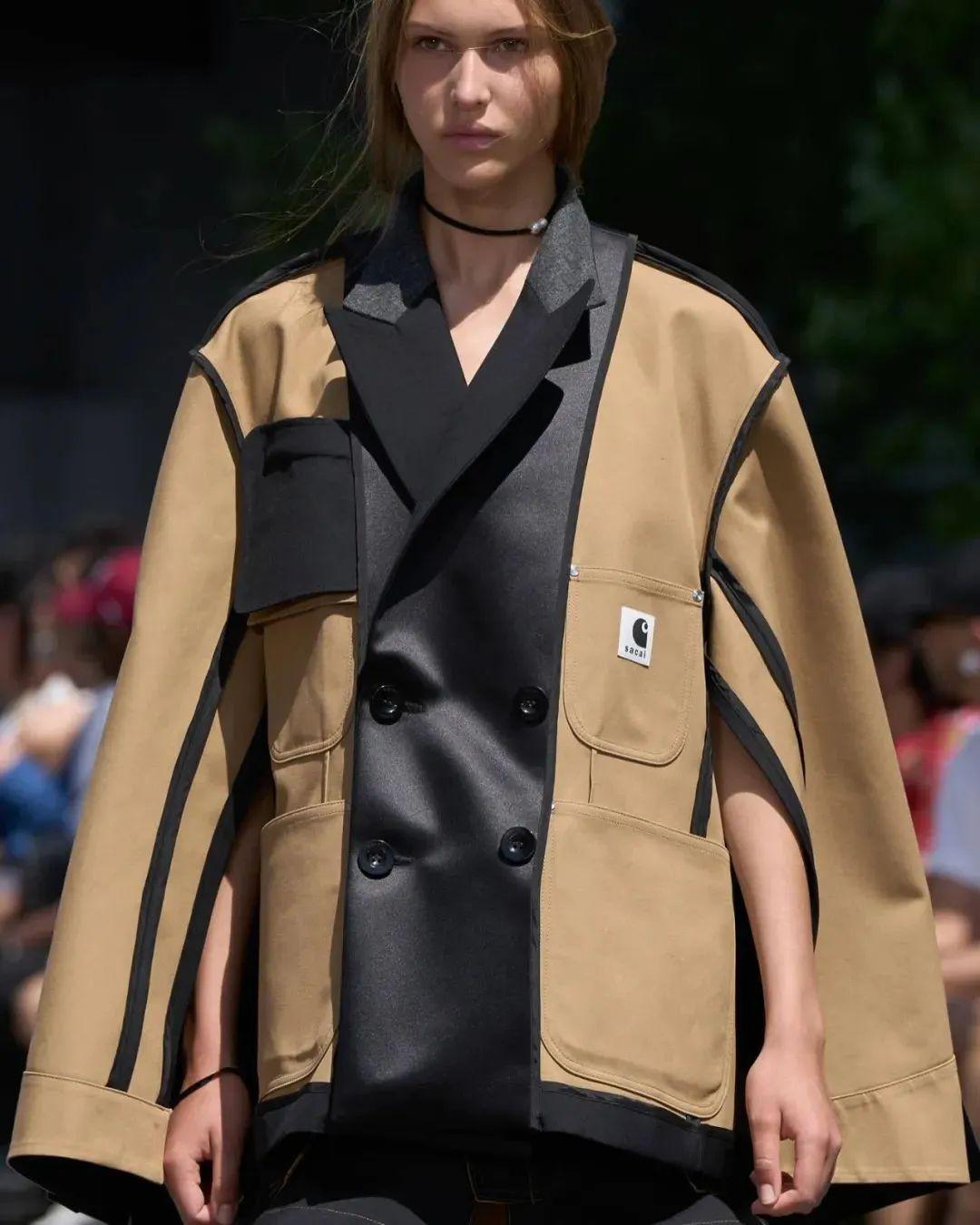 当然还有直接和Carhartt合作的品牌,比如Sacai——它们连续合作了两次。经典的解构设计风格加上Carhartt硬核的工装风格,碰撞出不一样的火花,针织面料更是特别。