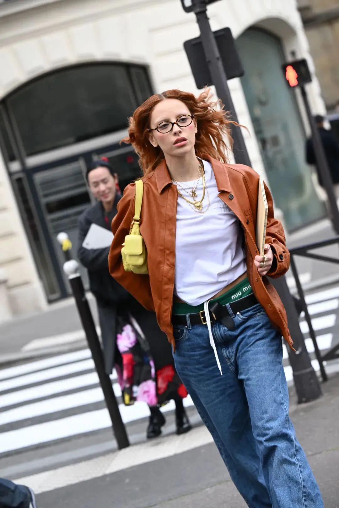 如果说什么会让那些走知识分子风的时髦人士都开始注意到复古工装夹克,那么Prada和Miu Miu功不可没。Prada通过皮面的加持,夹克下摆的做旧毛边,宽大的廓形,完美展现了复古摩登率性又自由的感觉。
