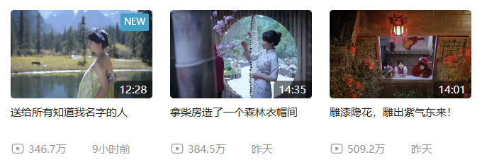 这些博主同样视频用心,画面精美,爆款众多,也用心追溯着中华传统工艺,从内容上来说,李子柒已经算不上独一份的存在。