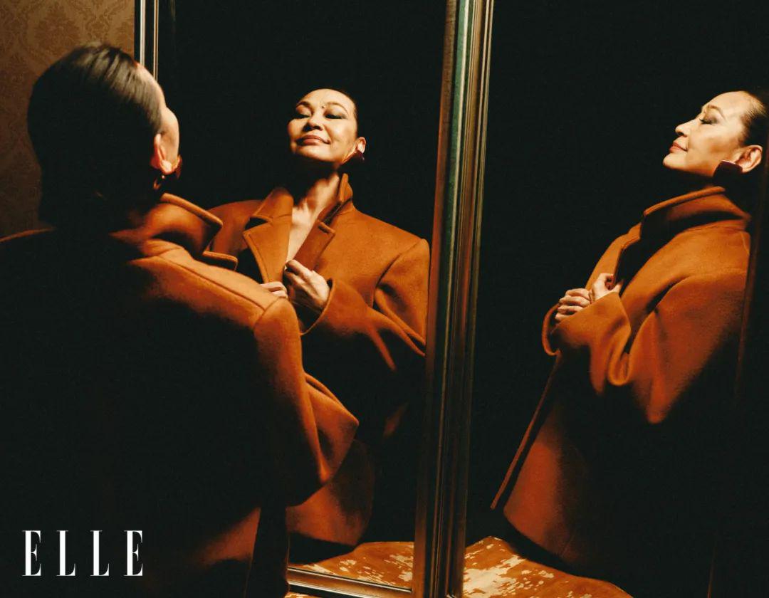 后来无论是结婚或者生育,艾丽娅都没撂下演戏这件事。杂志拍摄的前一天,59岁的艾丽娅正在重庆万州拍戏,结束后第二天又要回去继续。2023年,她甚至接了12部戏。