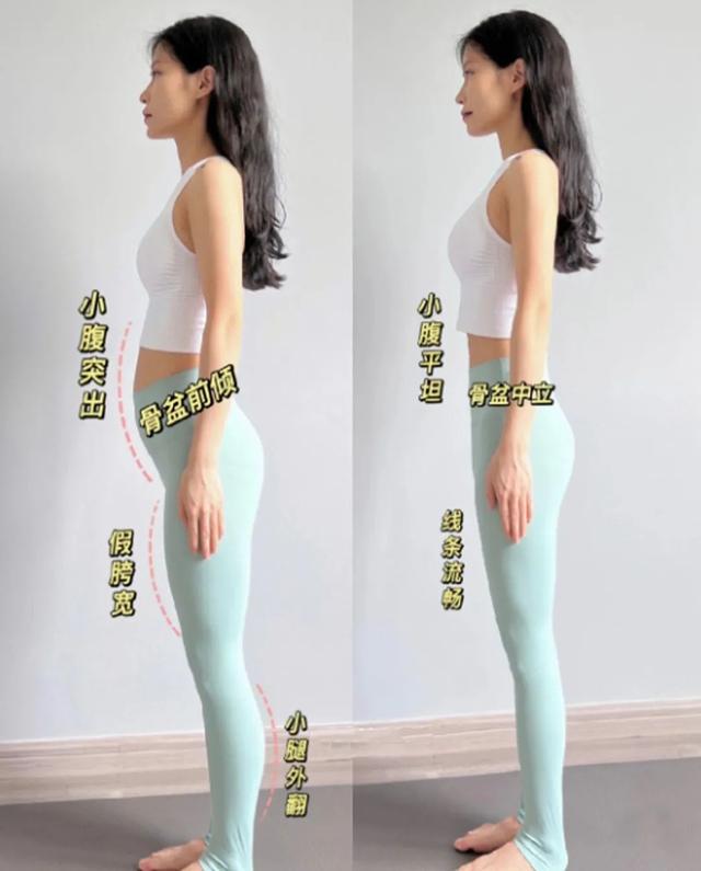 第一个要说的就是骨盆前倾,有很多姐妹在后台私信我说练了很久的腹部运动,感觉没什么变化小肚子还是很突出,那么就有可能是体态导致的问题。