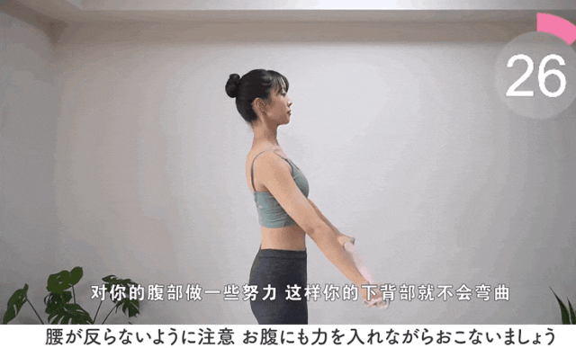 *小tip:收住肋骨,腰后侧还是要保持离墙面一个手掌的距离哦。
