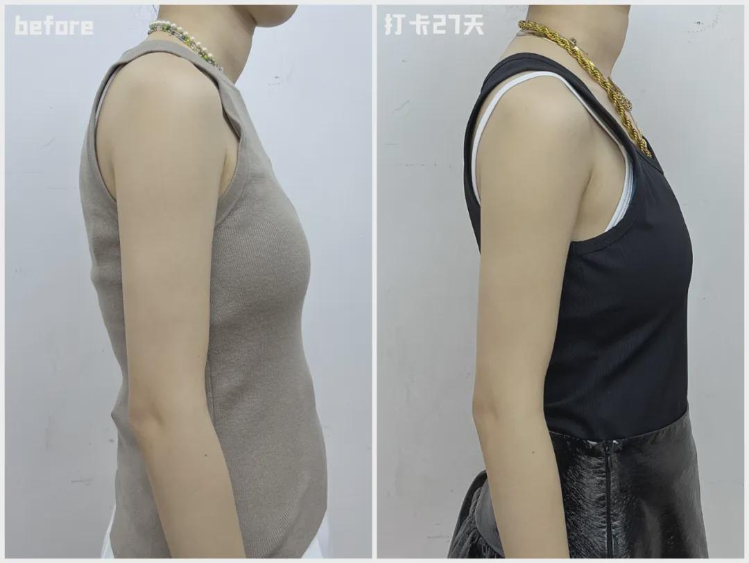 不过之前大家的变化都有记录下来。再看看我们之前小伙伴们打卡练背后的成果:后背拔起来、变薄,头前倾也好了一点。▼