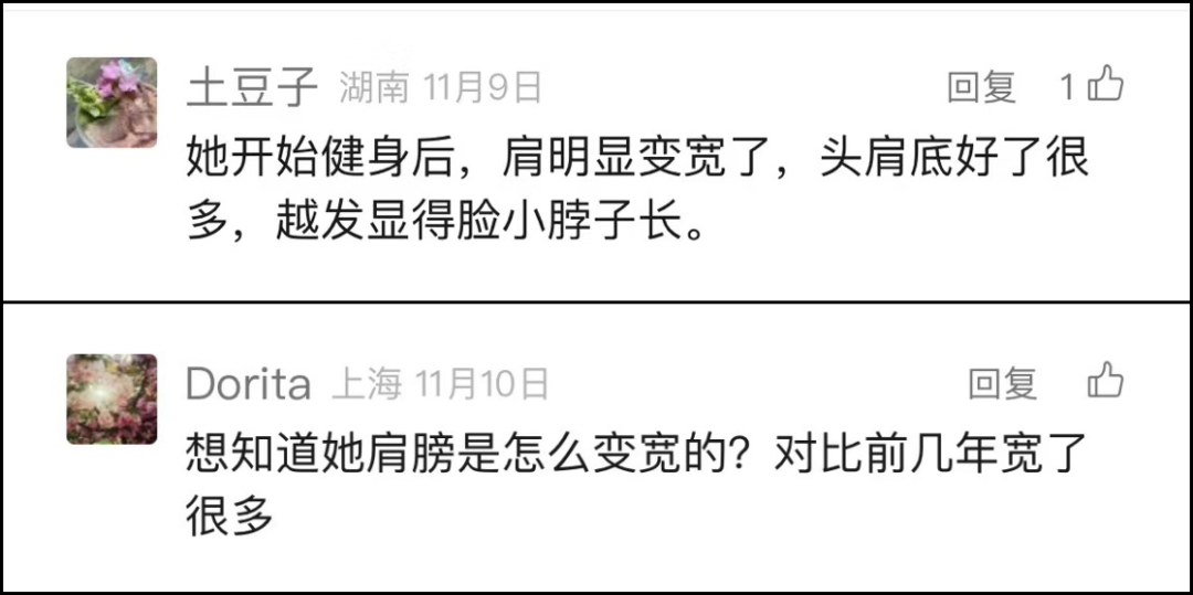 经得起屏幕考验的女明星们,本身头围不会大到哪里去。但她早期很多照片都显得头大,这和骨架小、肩窄,包括畏缩的体态都有关系;健身后把肩膀练宽,把背打开,整个人显得舒展很多。对比下早期和现在▼