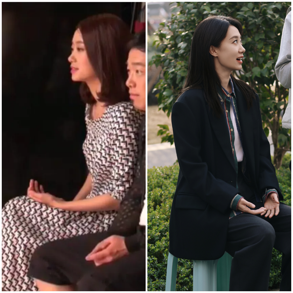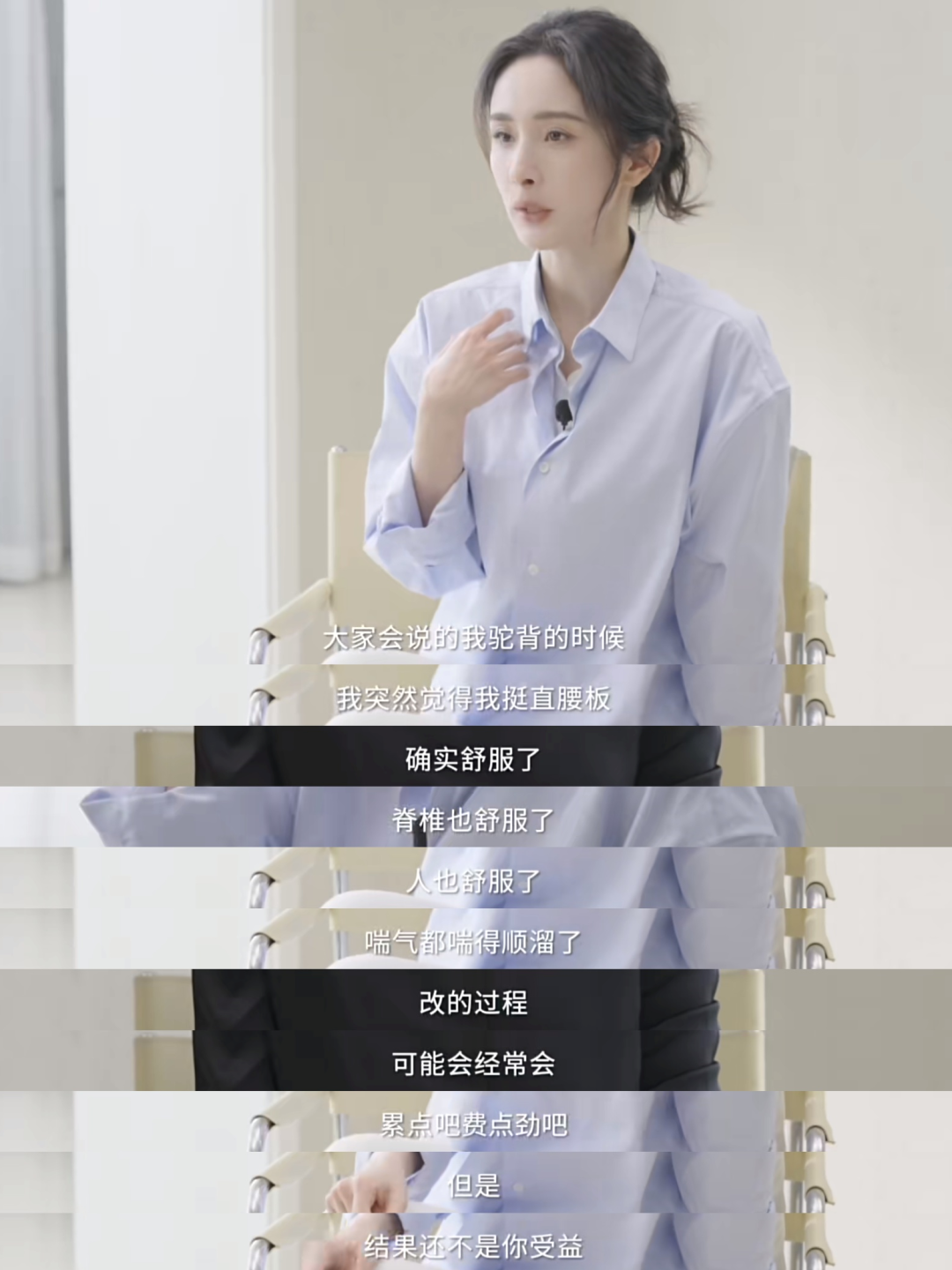 后来她比较注意这个问题,很久没被眼尖的网友说了。这两张同样是低头的姿势,能看出驼背、头前倾与否的区别。▼