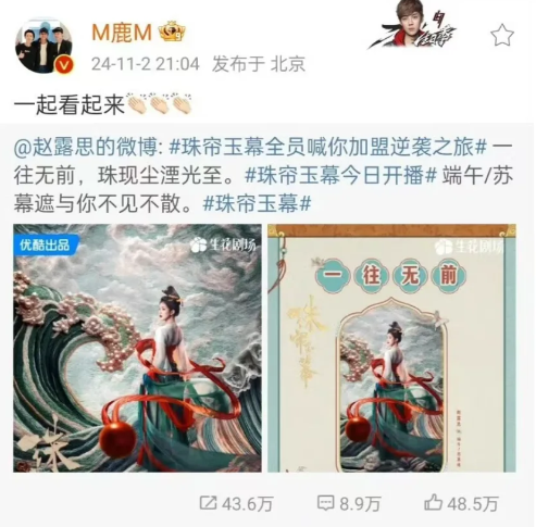 后来关晓彤以角色的成年形象出现,鹿晗发微博宣传了不到半小时就选择了删除。