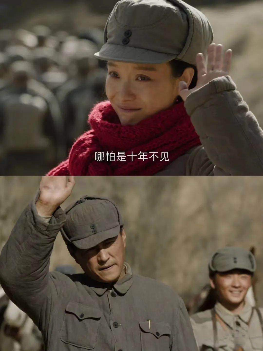 当周秀芳目送爱人奔赴战场时,倪妮流露出的不舍和坚毅,让人动容。