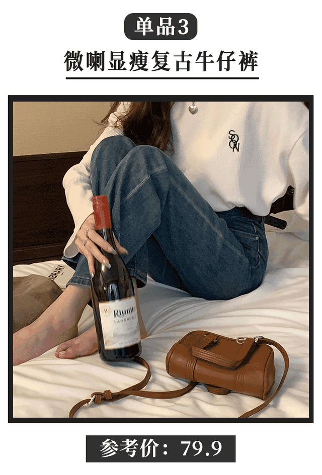 想要稍微紧身一点的裤子的姐妹举手!这条就特别适合腿比较细但是腿型不是很好的那种身材,不得不说微喇裤对小腿的修饰能力简直一绝。