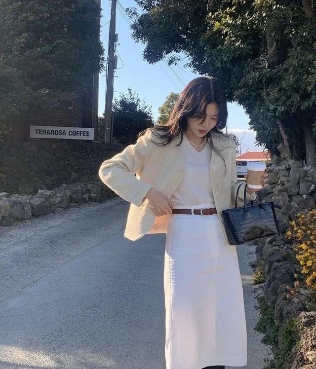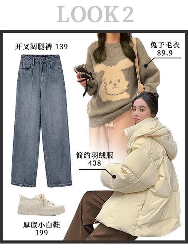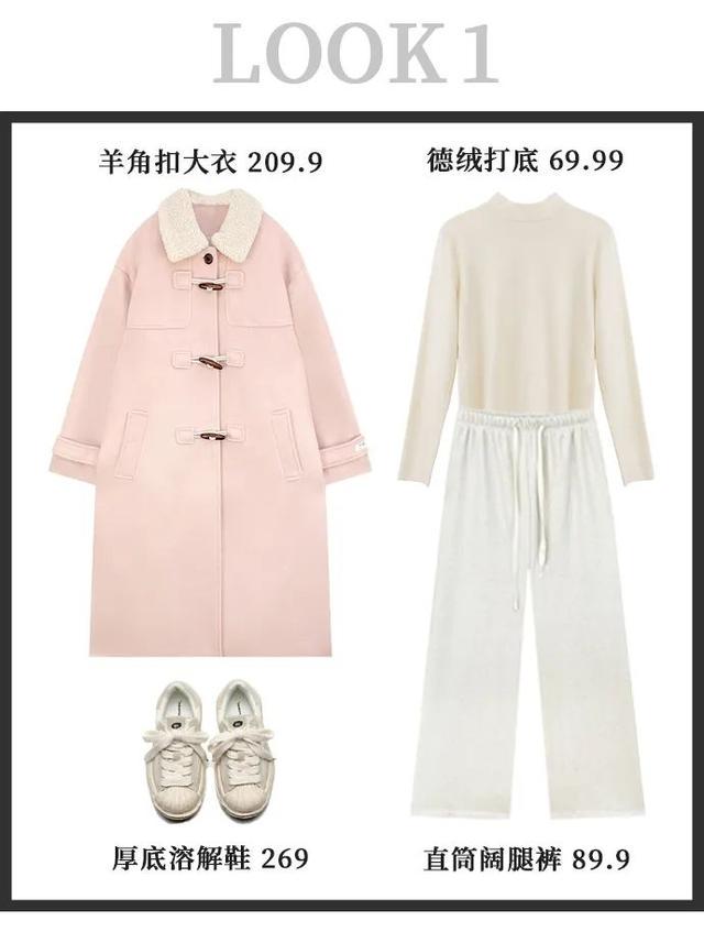 这一套整个就是一个乖乖女的感觉,奶白色再加上粉粉的大衣真的自带甜美小女生的气场,过年见家长什么的一绝。