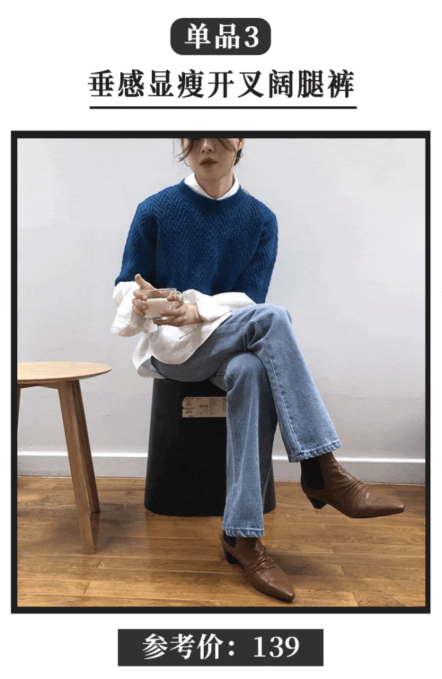 阔腿牛仔裤也是衣柜里必不可少的单品呀,这条水洗蓝有点小复古又很百搭,是怎么穿都好看的类型没错了。