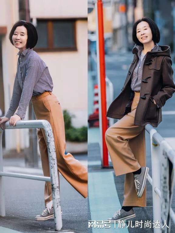 这位五十岁妈妈偏爱宽松的衬衫、阔腿裤等服饰,颜色以素雅为主,既显得大方得体,又不会过于花哨。她避免穿着紧身衣裤,让自己在活动时不受束缚,显得更为自在,值得中年女人借鉴哦。