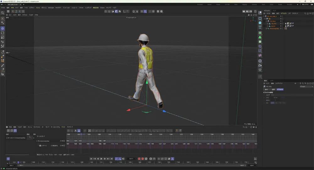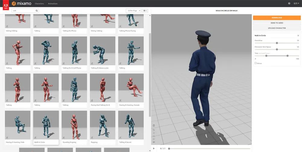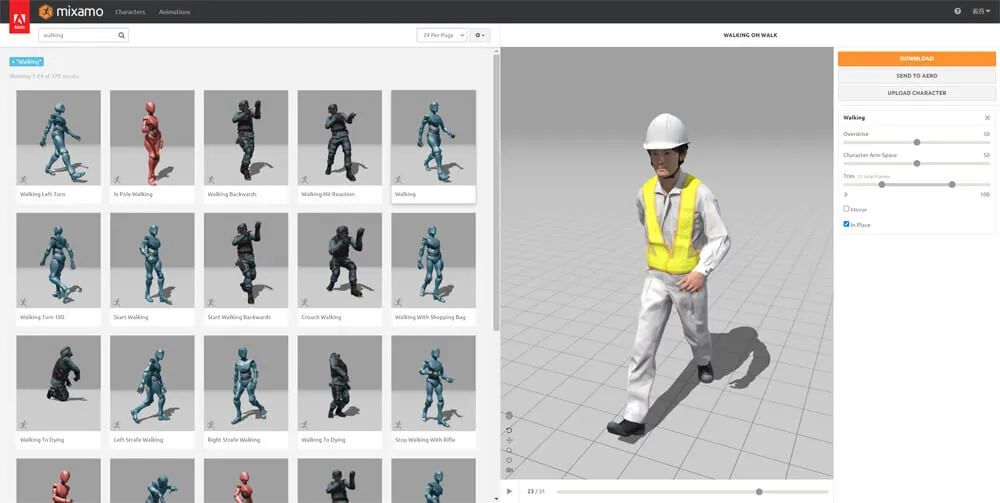 考虑到地形复杂交错,团队否掉了最初使用群众模拟技术的计划,选择按区域划分,逐一添加任务。在制作群演角色时用到了Mixamo,将购买的3D模型导入Mixamo进行动画处理,然后在4D中调整动画。